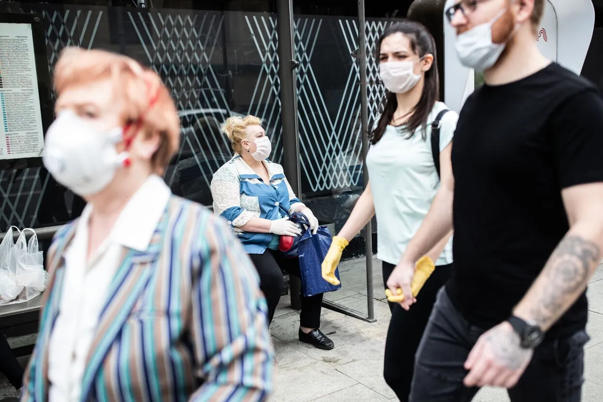 May 12 marked the end of the “non-working” days in Russia, which were introduced at the end of March in a bid to stop the spread of the coronavirus. Construction workers and industrial companies went back to work, and the capital began operating under a “mask regime” — Moscow’s residents are now required to wear both masks and gloves in stores, on public transport, and at work, or face fines of up to 5,000 rubles (about $68). In a special photo report for Meduza, photographer Evgeny Feldman took a walk around Moscow during rush hour, to see what the capital looks like during its first day back to work.