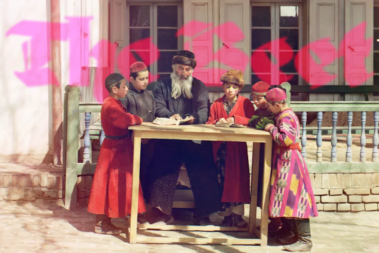 A group of Jewish children with their teacher in Samarkand. This photo was taken sometime between 1905 and 1915.