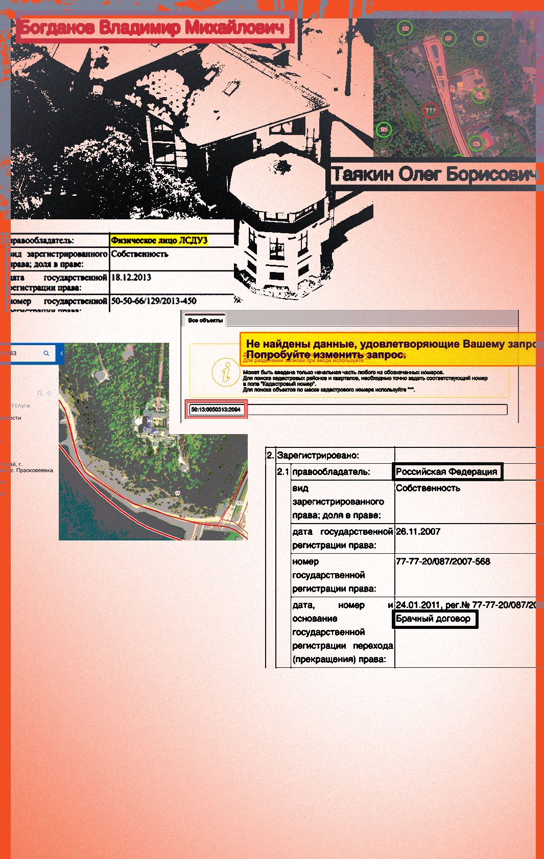 Сравнив списки существующих в России объектов недвижимости за разные даты, мы вычислили несколько сотен удаленных участков и по старым архивным выпискам, которые накопили за десять лет [нашей] работы, восстановили имена тех, кого от нас так старательно прячут.