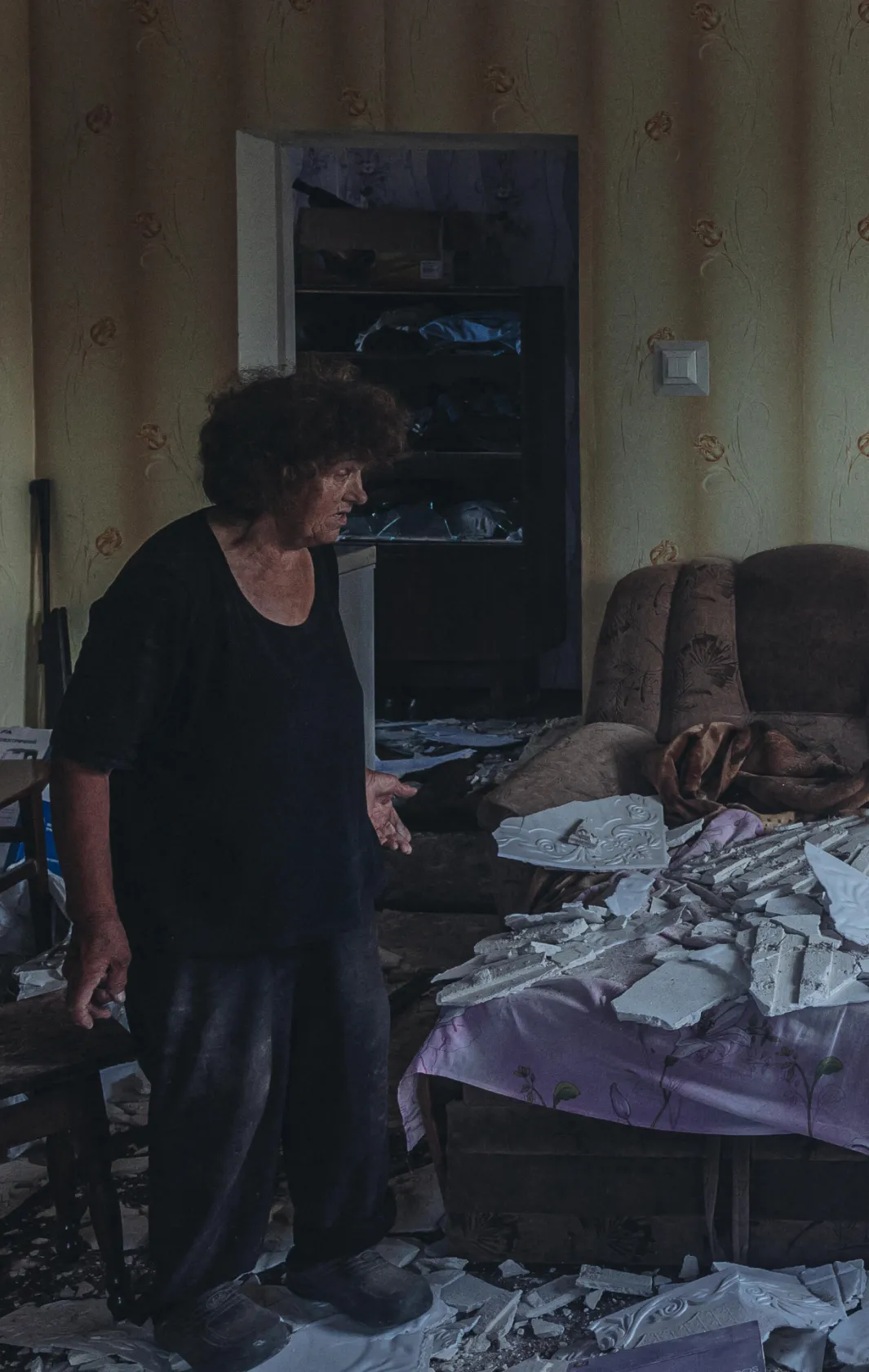 Женщина в своем доме после российского обстрела в Краматорске