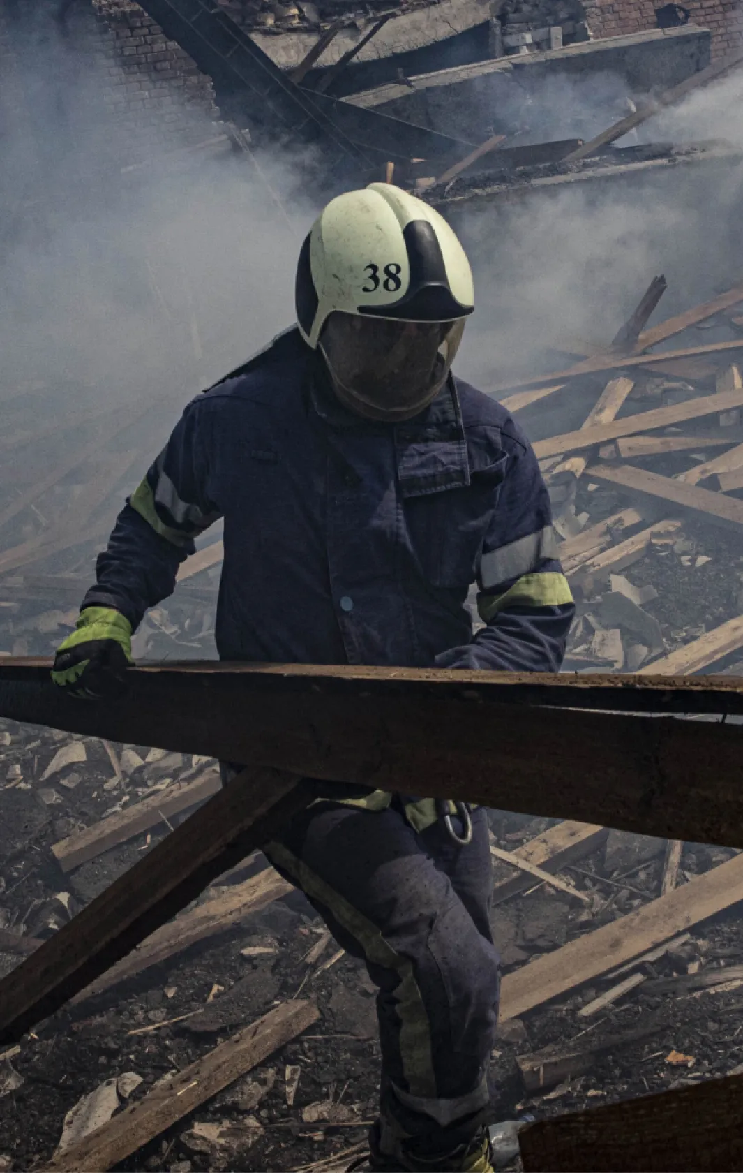 Украинские пожарные разбирают завалы на разрушенном в результате российского ракетного удара керамическом заводе в Славянске. Город, который контролирует армия Украины, был обстрелян россиянами утром 26 августа. Жертв нет