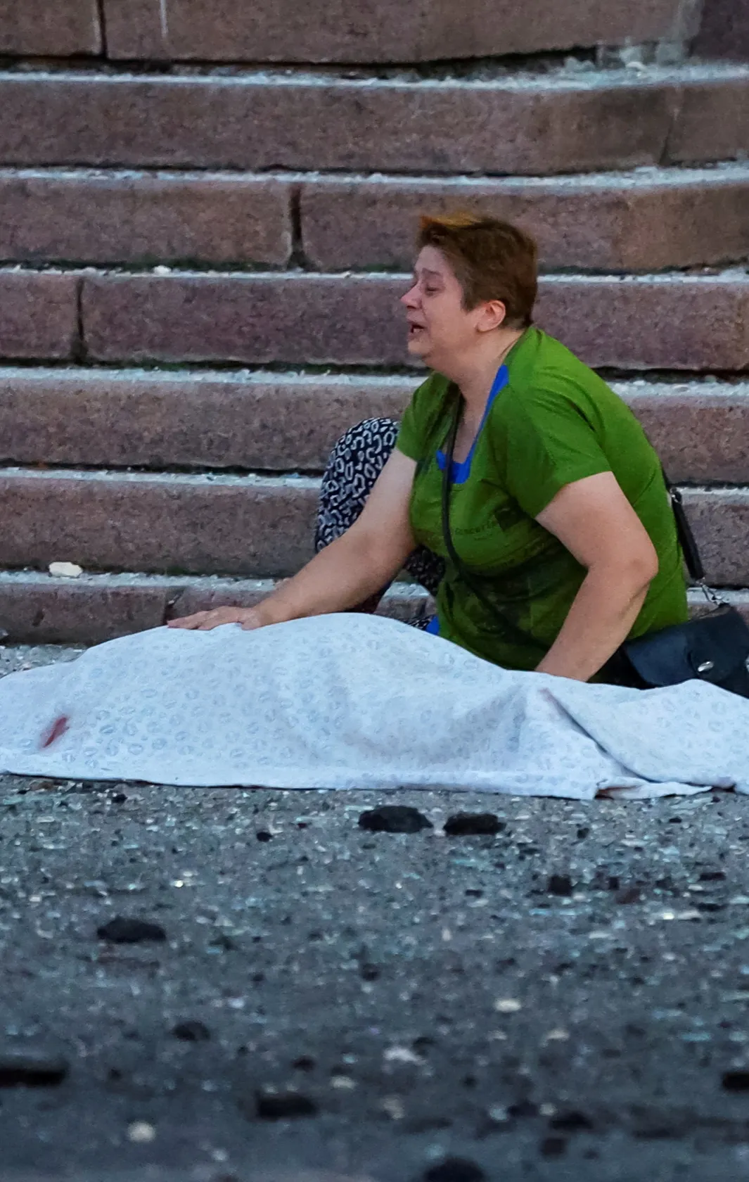 Женщина рядом с телом своей матери в Донецке. РИА Новости сообщило, что в результате обстрела города украинскими войсками два человека погибли, один пострадал