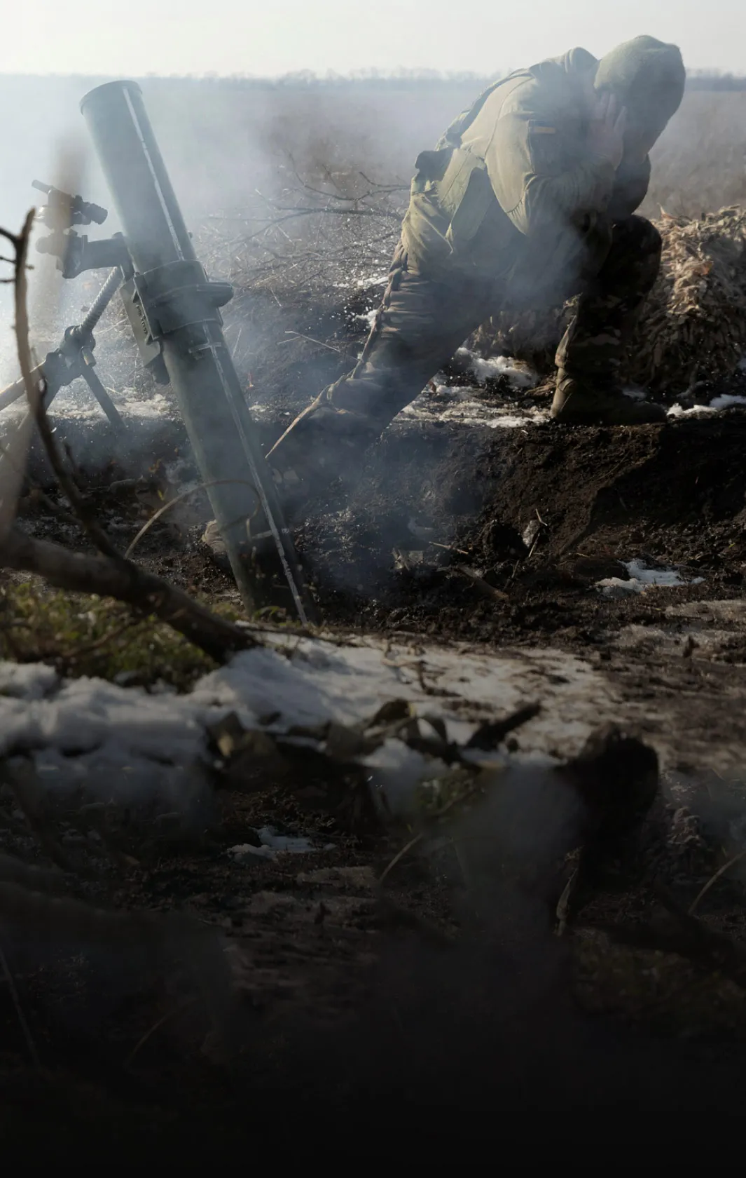 Солдаты ВСУ ведут минометный огонь по позициям российских войск