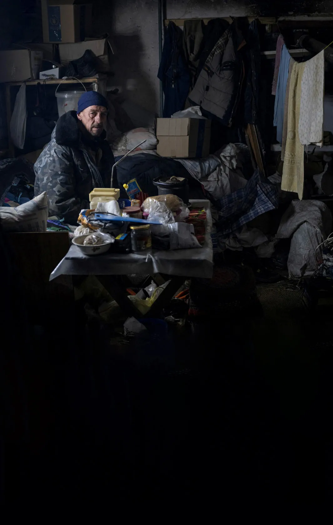 Житель Северска прячется от обстрелов в подвале