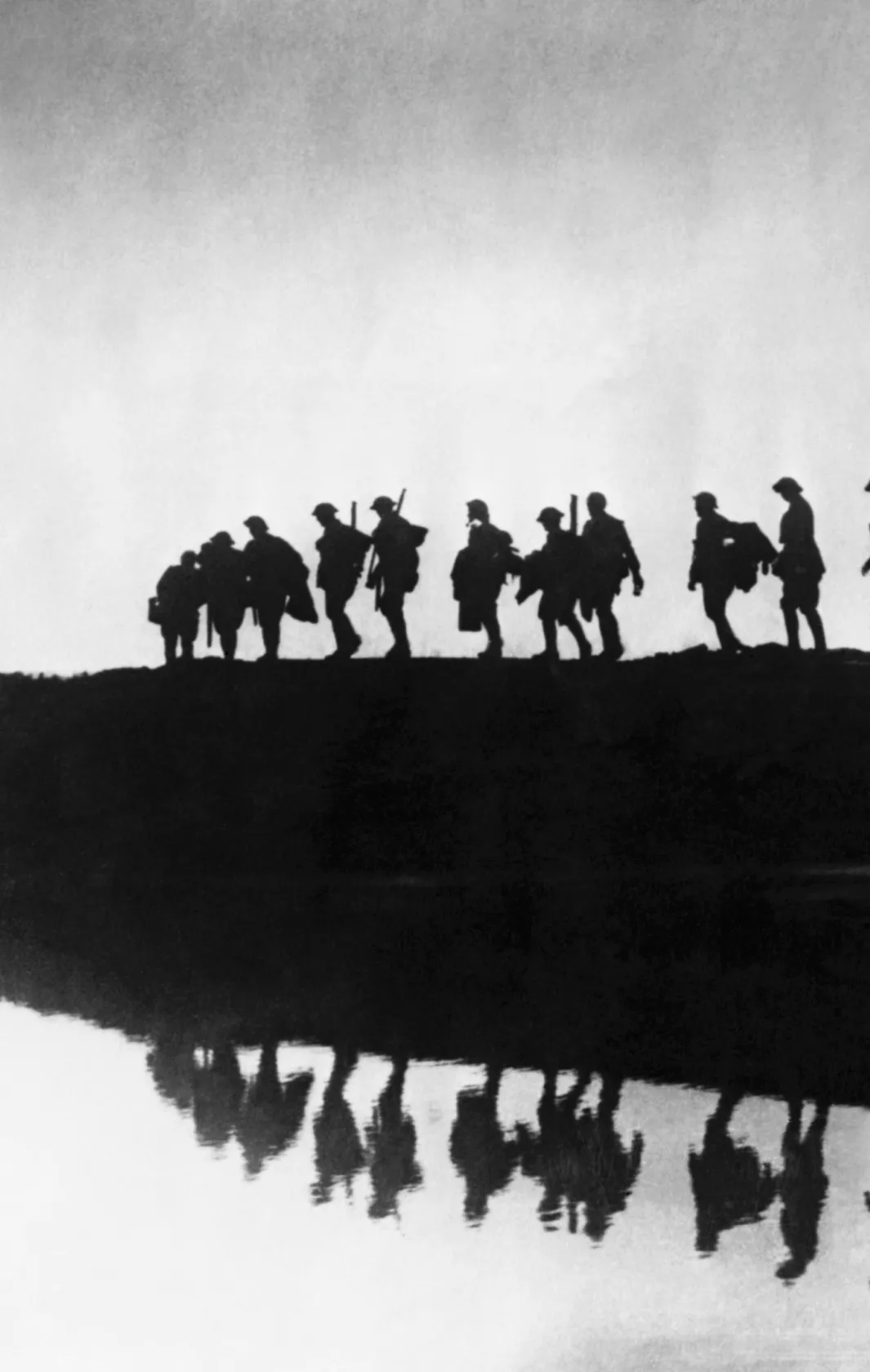 Британские солдаты везут на двухколесных носилках раненого сослуживца во время битвы на реке Сомма во Франции — одного из крупнейших сражений в истории человечества. Боевые действия между британцами и французами с одной стороны и немцами с другой продолжались с июля по ноябрь 1916 года — за это время погибли и были ранены более 1 миллиона человек. Битва на Сомме стала первым сражением, в котором применили танки; важную роль в ней сыграла и авиация. После битвы стратегическая инициатива перешла от Центральных держав к Антанте — и это сказалось на моральном духе и боеспособности немецких войск