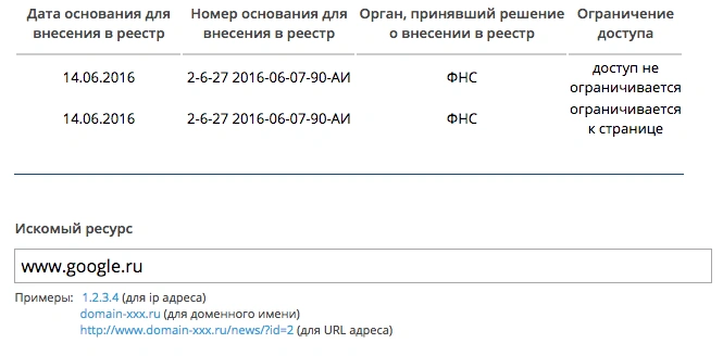 Роскомнадзор убрал информацию о блокировке российского домена Google со своего сайта. Если раньше по запросу www.google.ru там находилось две записи (в одной из которых шла речь о блокировке), то теперь только одна — в ней говорится, что доступ к сайту не ограничивается.