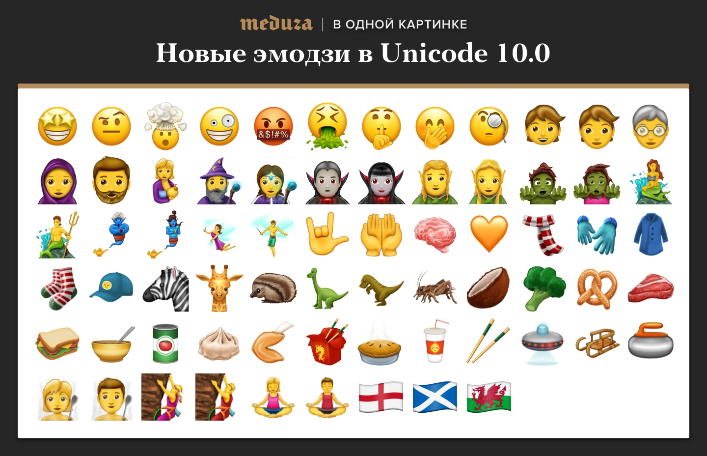 Русалка, вампир и брокколи. Все новые эмодзи — в одной картинке Unicode принял новый стандарт