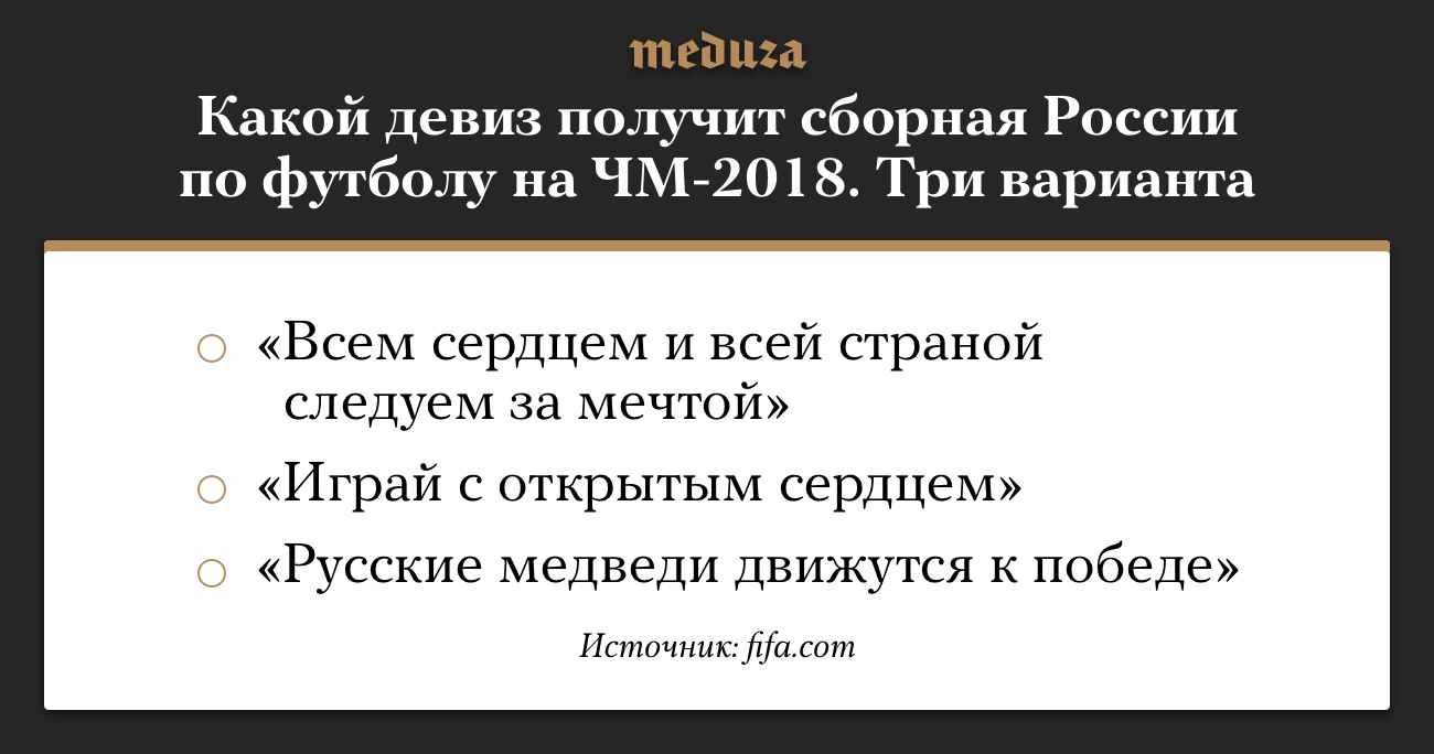 Сборной России по футболу выбирают девиз на ЧМ-2018. Какие есть варианты