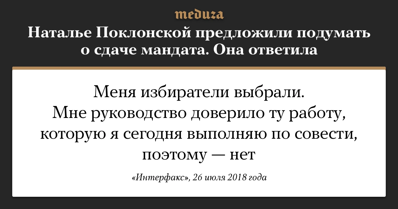Глава фракции «Единой России» в Госдуме Сергей Неверов заявил, что депутат Наталья Поклонская, отказавшаяся голосовать в поддержку пенсионной реформы, должна подумать о сдаче мандата. Поклонская ответила отказом.