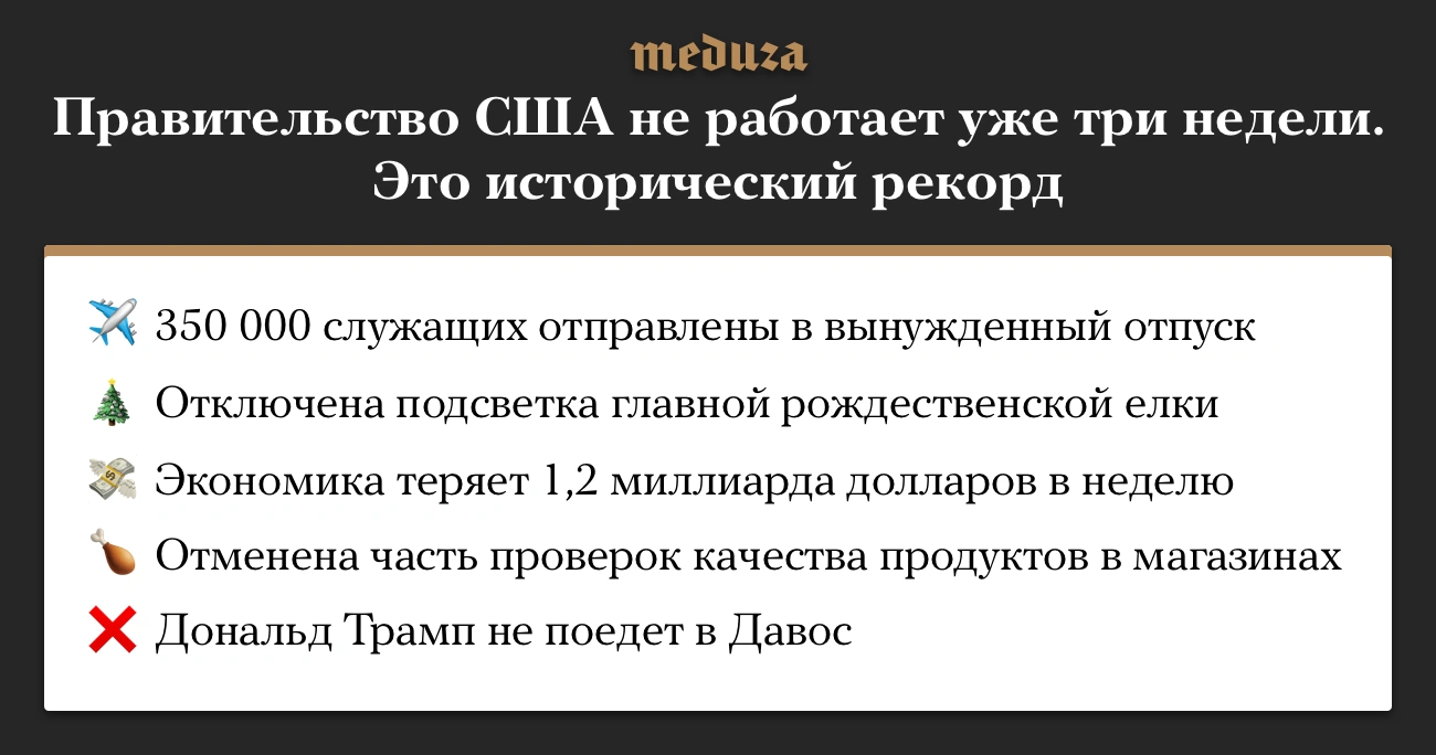 Правительство США не работает уже более трех недель — такого раньше никогда не было. Вот что это значит на практике