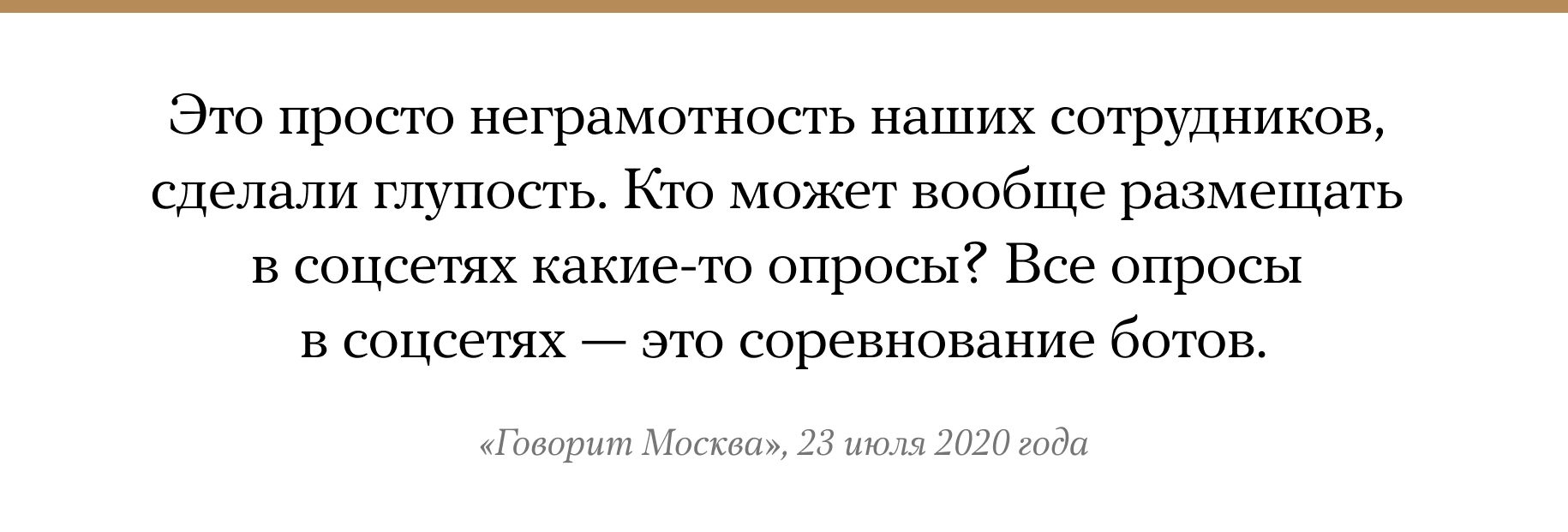 21 июля Госдума разрешила проводить голосование на выборах в течение трех дней. 22 июля в твиттере ЦИК появился опрос «Считаете ли вы удобной практику голосования в течение нескольких дней?». Абсолютное большинство его участников выбрали ответ «Нет». После этого опрос удалили. 23 июля глава ЦИК Элла Памфилова объяснила публикацию опроса некомпетентностью сотрудников. «Я сегодня дам распоряжение вообще все убрать, потому что глупость. Это нерепрезентативно», — сказала Памфилова радиостанции «Говорит Москва». Опрос, аналогичный опубликованному в твиттере ЦИК, был размещен и на странице комиссии во «ВКонтакте». Его не удаляли.