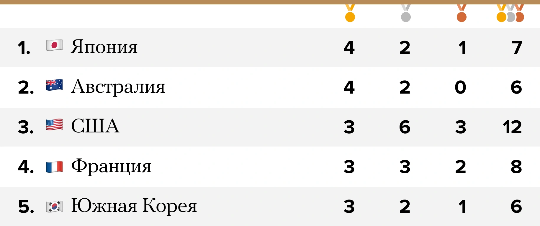Париж-2024. Медальный зачет