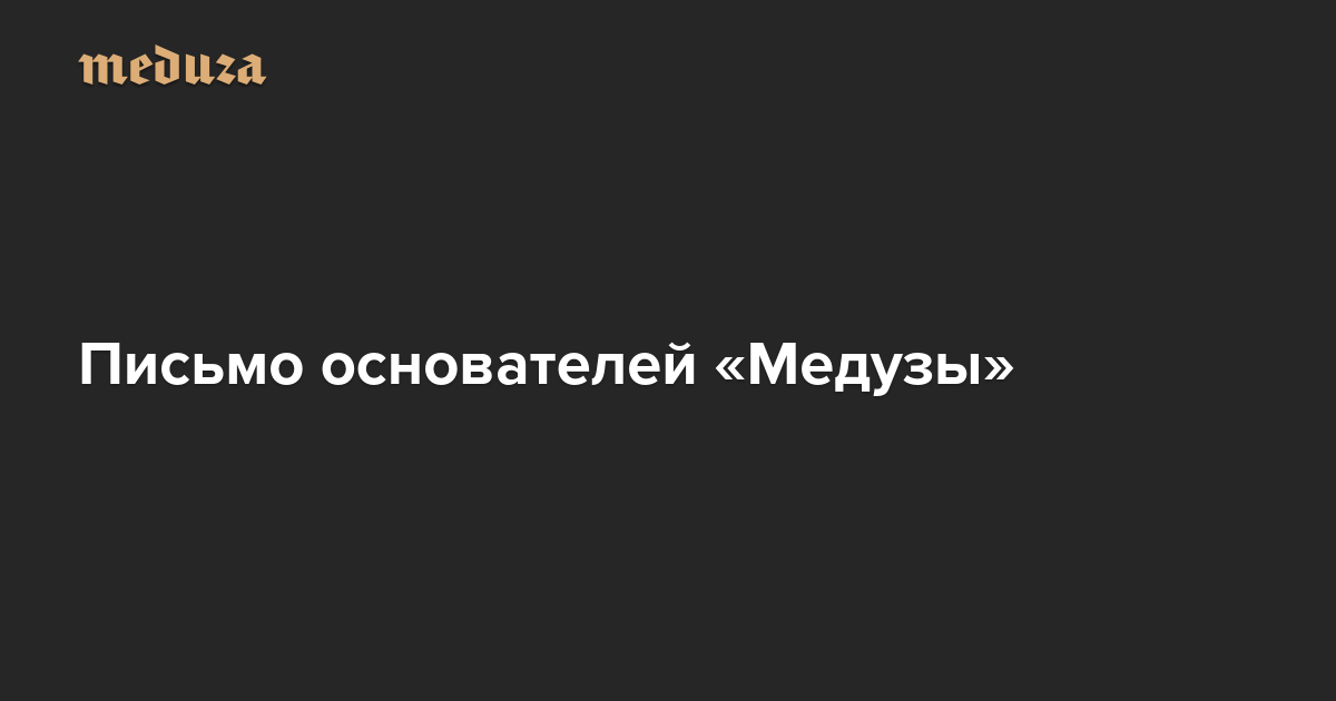 Мы не расходимся Письмо основателей «Медузы»