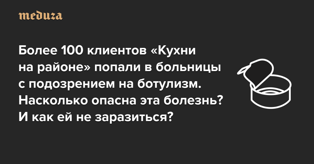 Более 100 клиентов «Кухни на районе» попали в больницы с подозрением на ботулизм. Насколько опасна эта болезнь? И как ей не заразиться? В зоне риска — те, кто неправильно консервирует и хранит продукты
