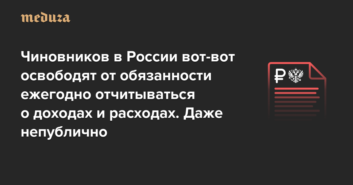 Чиновников в России вот-вот освободят от обязанности ежегодно отчитываться о доходах и расходах. Даже непублично Война побеждает борьбу с коррупцией — и хоронит последнее медведевское наследие
