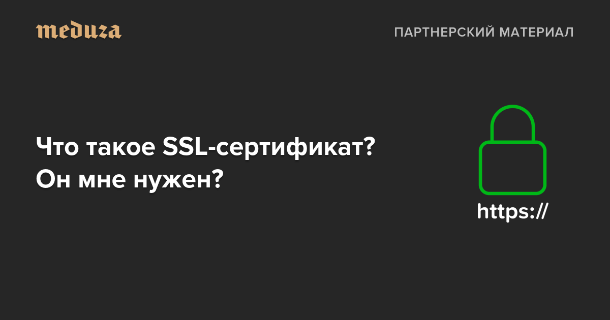 Все зависит от количества доменов и степени необходимой проверки — от этого же зависит и цена сертификата (самый базовый обойдется в 3600 рублей в год). Выбрать нужный сертификат можно на сайте Ru-Center. Специально для читателей «Медузы» действует бессрочная скидка на все сертификаты 20% по промокоду MEDUZA. Бесплатные сертификаты Ru-Center тоже выдает, при покупке домена или хостинга (подробная информация о предложении здесь).