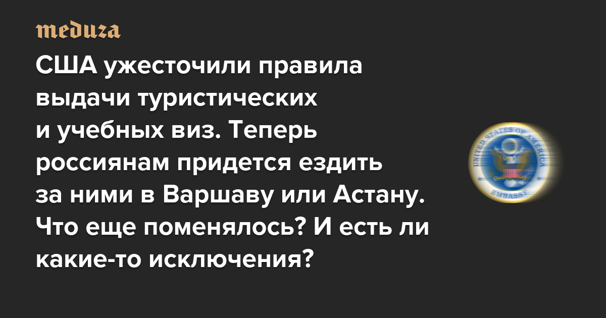CША ужесточили правила выдачи туристических и учебных виз. Теперь россиянам придется ездить за ними в Варшаву или Астану Что еще поменялось? И есть ли какие-то исключения?