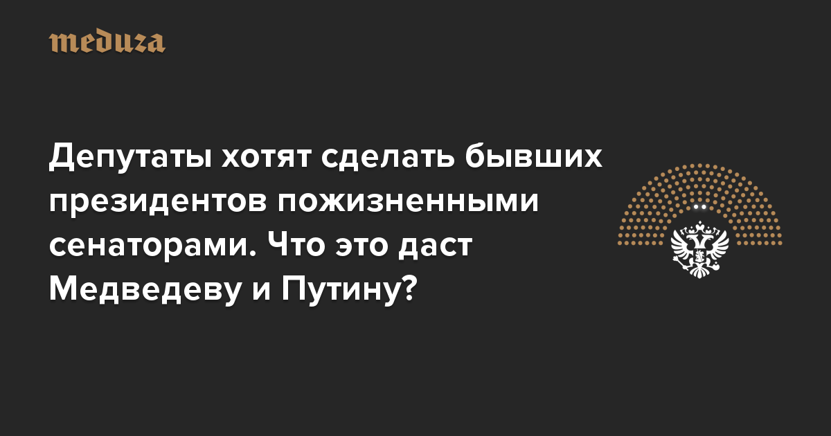 Депутаты хотят сделать бывших президентов пожизненными сенаторами. Что это даст Медведеву (прямо сейчас) и Путину (когда он уйдет в отставку)?