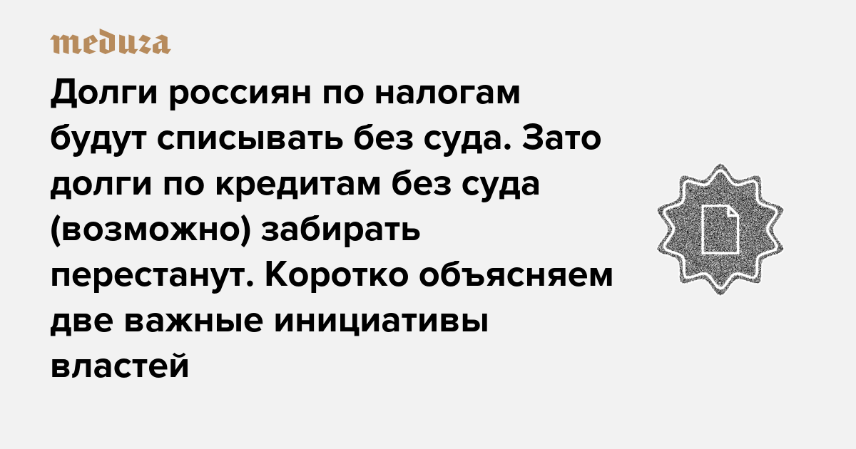 Долги россиян по налогам будут списывать без суда. Зато долги по кредитам без суда (возможно) забирать перестанут Коротко объясняем две важные инициативы властей