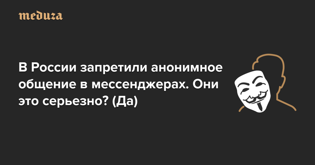 В России запретили анонимное общение в мессенджерах. Они это серьезно? (Да)