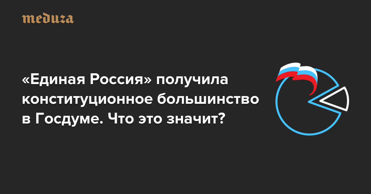 В России конституционное большинство — это две трети (более 300) мест в Госдуме у одной из партий. «Единая Россия», по предварительным данным, займет примерно 343 места, то есть другим партиям останется чуть больше сотни мандатов.