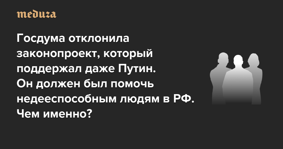 Госдума отклонила законопроект, который поддержал даже Путин. Он должен был помочь недееспособным людям в РФ Что такое распределенная опека, появления которой больше 10 лет добиваются правозащитники?