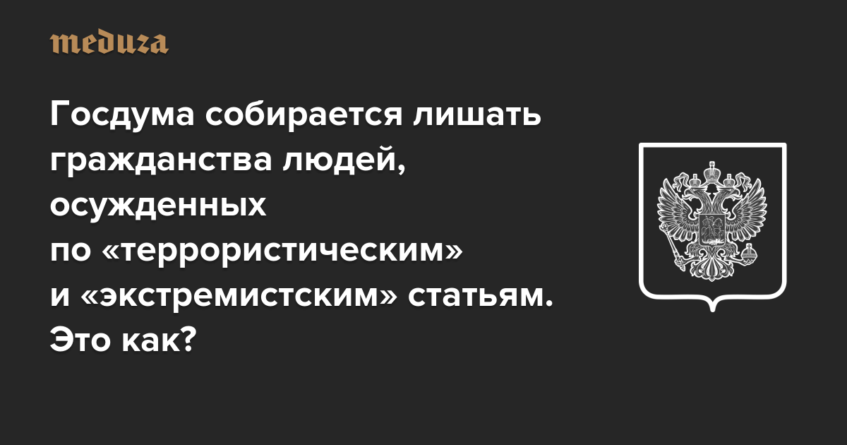 Госдума собирается лишать гражданства людей, осужденных по «террористическим» и «экстремистским» статьям. Это как?