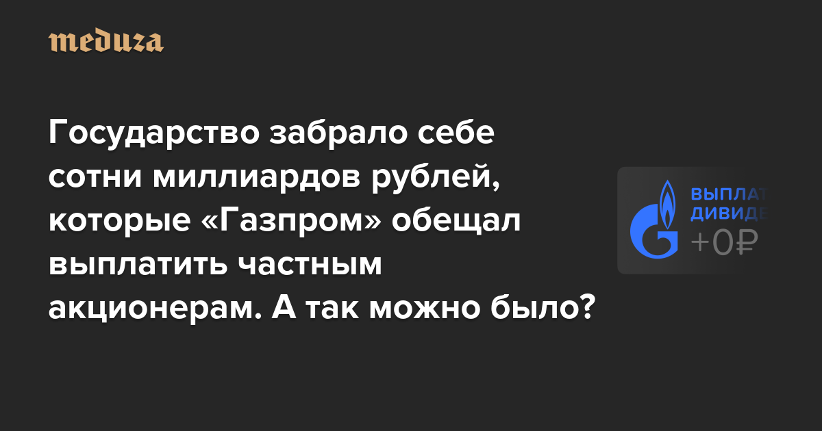 Государство забрало себе сотни миллиардов рублей, которые «Газпром» обещал выплатить частным акционерам. А что, так можно было?