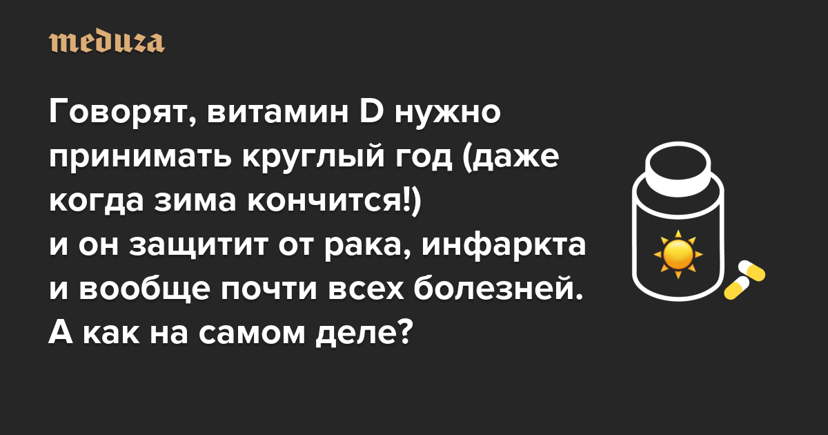 Говорят, витамин D нужно принимать круглый год (даже когда зима кончится!) и он защитит от рака, инфаркта и вообще почти всех болезней. А как на самом деле?
