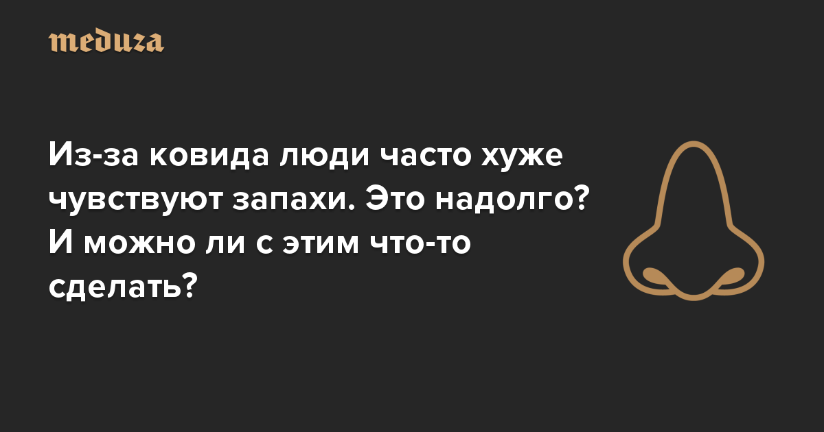 Многие заболевшие ковидом жалуются на проблемы с обонянием. Кто-то перестает чувствовать запахи вовсе (это состояние называется аносмия), кто-то чувствует их хуже (гипосмия), у кого-то они искажаются, в результате чего любая еда может начать пахнуть тошнотворно (паросмия). Иногда это — единственный симптом ковида, иногда — первый, а иногда он появляется после всех остальных. «Медуза» решила рассказать, что известно о причинах развития этого симптома и прогнозах.