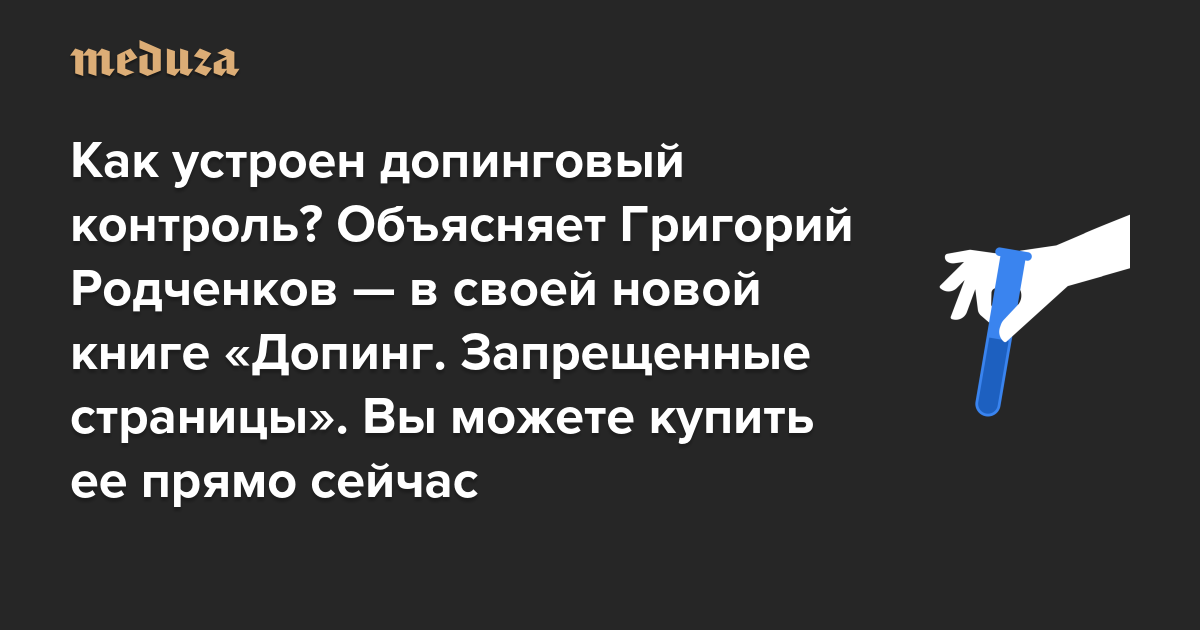 В издательстве «Медузы» вышла книга Григория Родченкова «Допинг. Запрещенные страницы» о системном использовании допинга российскими спортсменами и подмене положительных проб мочи на Олимпиаде в Сочи в 2014 году. Родченков много лет занимался допинговым контролем в СССР, а затем возглавлял Московскую антидопинговую лабораторию вплоть до приостановления ее деятельности в 2015-м. В одной из глав своей книги он объясняет, как устроен допинг-контроль, кто этим занимается и почему антидопинговая система так плохо работает.