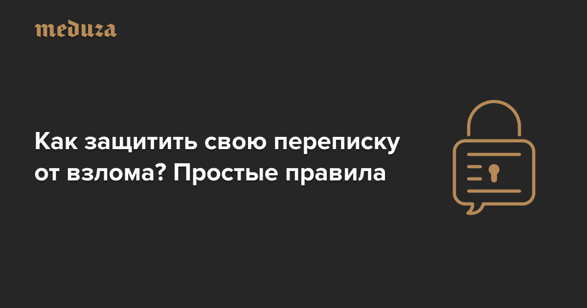 Сейчас расскажем, но сначала нужно оговориться: по-настоящему надежные средства защиты переписки вряд ли вас устроят, потому что они довольно сложные и требуют соблюдения определенных правил от всех ваших собеседников. Кроме того, если вы решите всерьез защитить свою переписку от спецслужб или мошенников, вам обязательно придется отказаться от любимых сервисов. Потому что все крупные почтовые сервисы и мессенджеры хранят переписку пользователей и могут выдать ее силовым ведомствам под давлением. В этих карточках мы сосредоточимся только на базовых правилах безопасности, соблюдение которых убережет вас от большинства угроз.