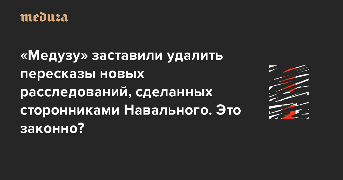 «Медузу» заставили удалить пересказы новых расследований, сделанных сторонниками Навального. Это законно? Отвечаем всерьез на этот очевидный вопрос