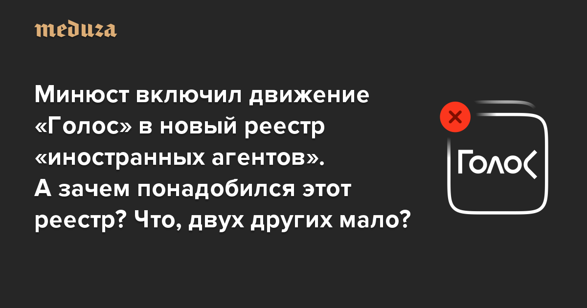Минюст включил движение «Голос» в новый реестр «иностранных агентов». А зачем понадобился этот реестр? Что, двух других мало?