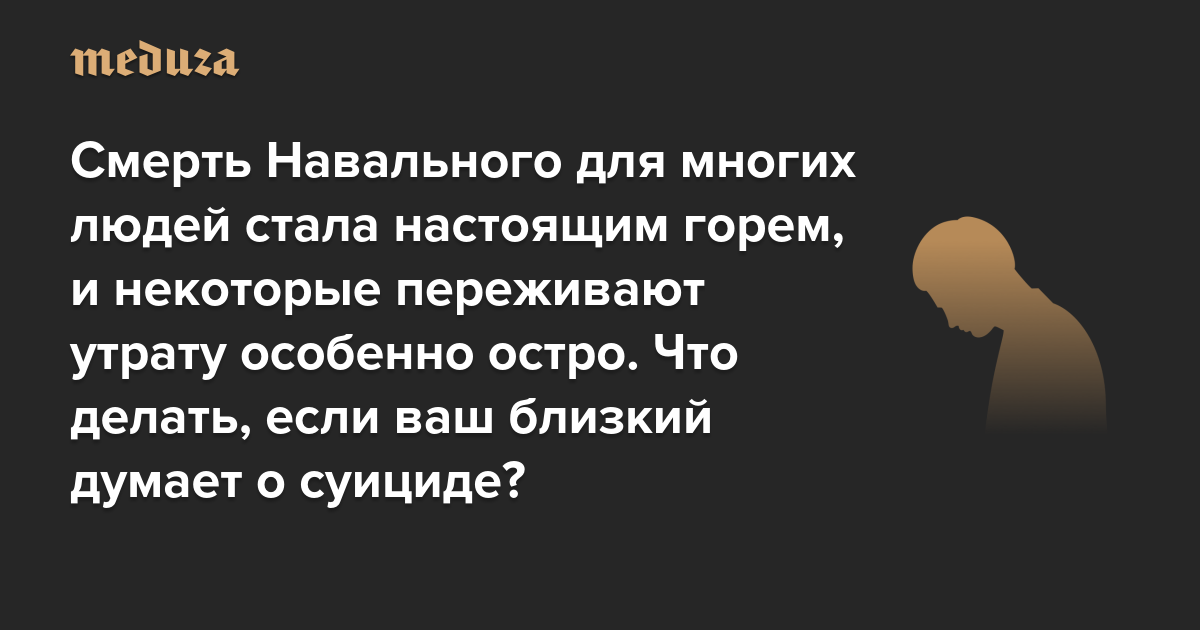 Смерть Навального для многих людей стала настоящим горем, и некоторые переживают утрату особенно остро. Что делать, если ваш близкий думает о суициде? Прочитайте эти карточки «Медузы» — они могут спасти чью-то жизнь