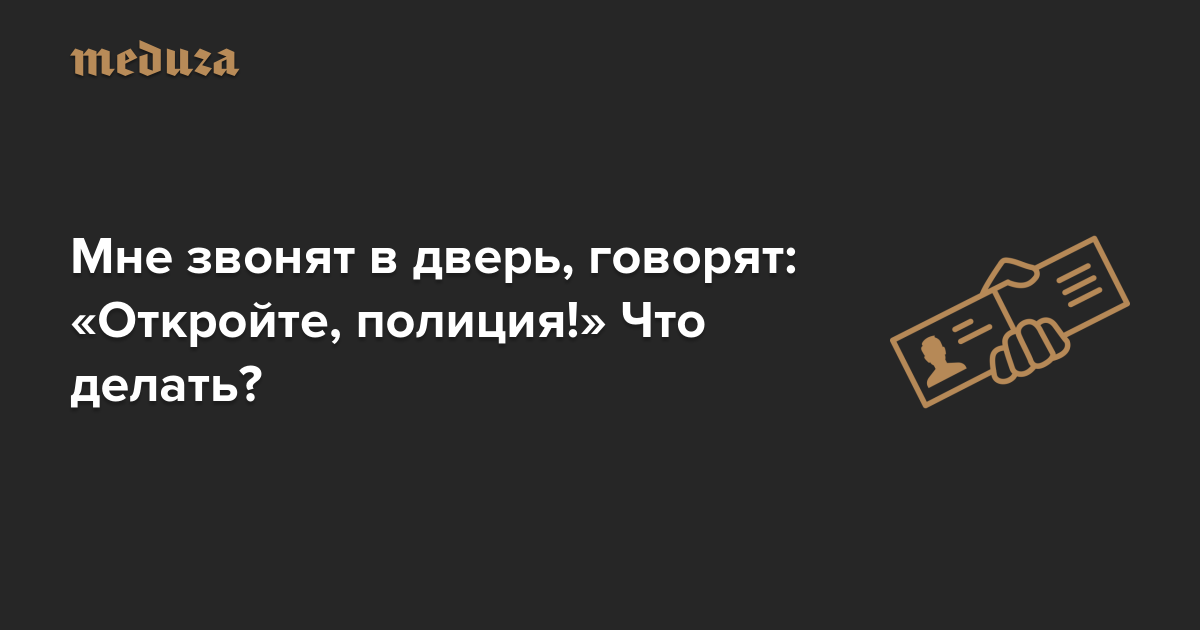 Да, но это еще не значит, что к вам не может прийти полицейский. На вас может пожаловаться сосед снизу, которому не нравится громкая музыка. Или управляющая компания вместе с полицией решит провести рейд для выявления людей, живущих без регистрации. Так что на всякий случай нужно быть готовым к визиту людей в форме. «Медуза» попросила экспертов проекта Комитета гражданских инициатив «Открытая полиция» дать несколько ключевых советов по теме.