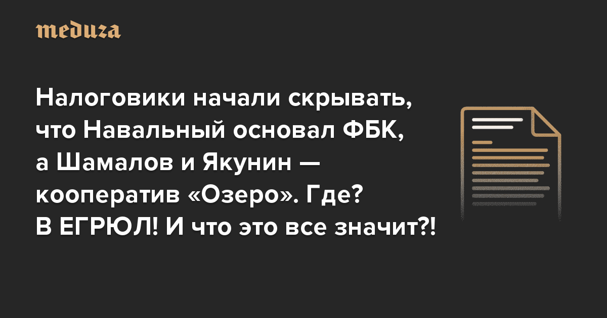Налоговики начали скрывать, что Навальный основал ФБК, а Шамалов и Якунин — кооператив «Озеро». Где? В ЕГРЮЛ! И что это все значит?!