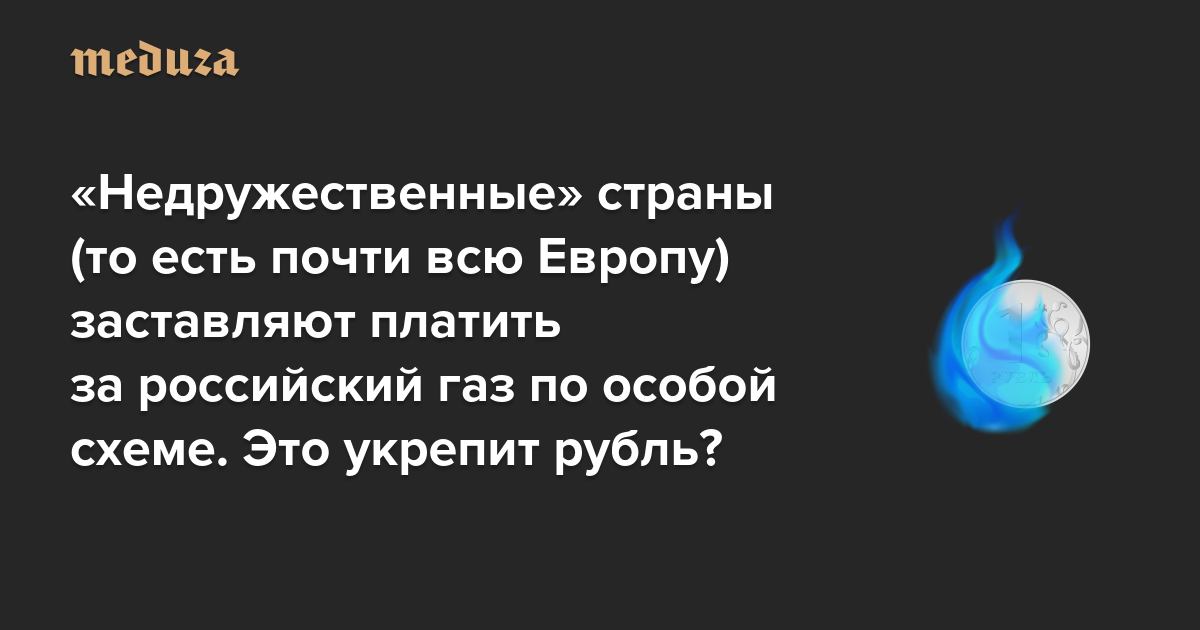 Наконец, если бы Кремль сумел заставить западные страны покупать газ за рубли, это могло бы создать дополнительный спрос на российскую валюту (и поддержать ее курс в долгосрочной перспективе) и застраховать на случай доведения санкций до полного эмбарго на сырье из России. Именно такой запрет действует на закупку иранской нефти, но Иран все равно ведет внешнюю торговлю — через специальные счета в иранских риалах, объяснил собеседник «Медузы». Россия тоже могла бы создать такую альтернативную финансовую инфраструктуру.