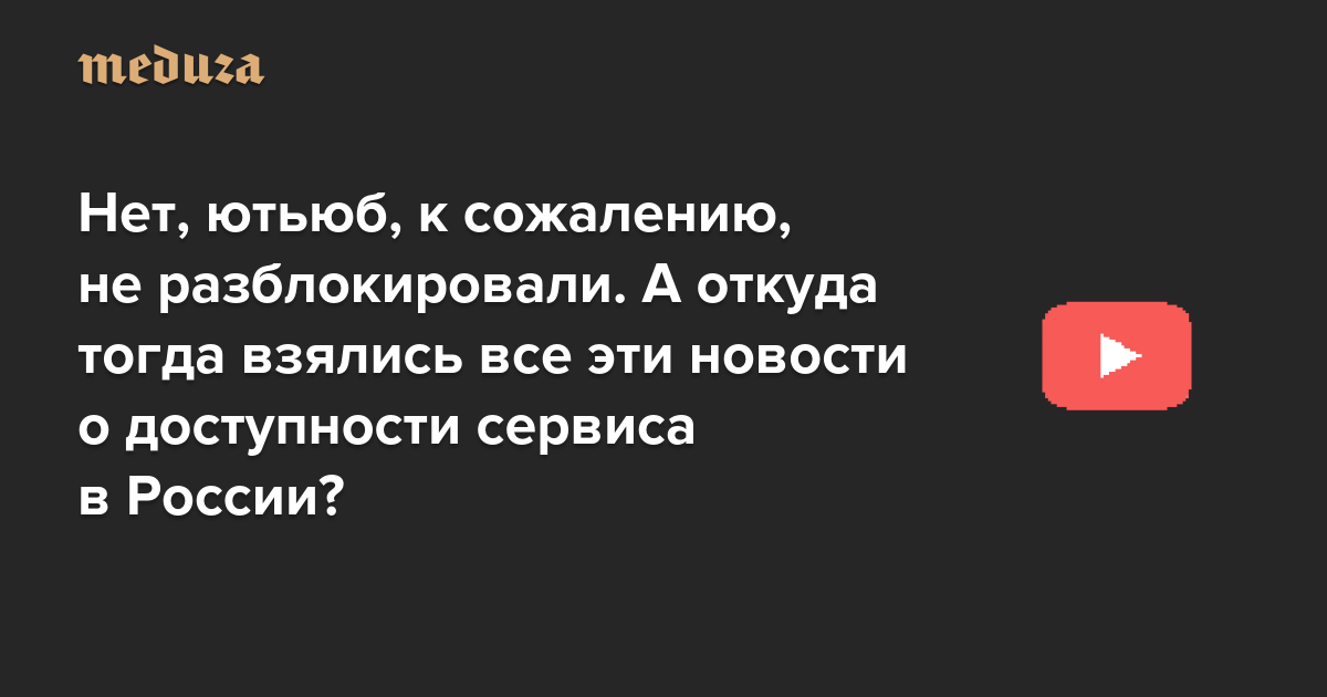 Нет, ютьюб, к сожалению, не разблокировали. А откуда тогда взялись все эти новости о доступности сервиса в России?