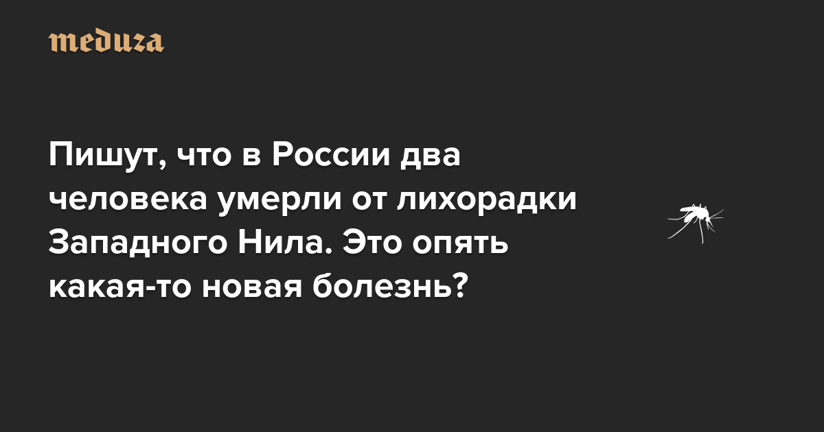 Пишут, что в России два человека умерли от лихорадки Западного Нила. Опять какая-то новая болезнь? (Сразу ответим: старая, но из-за изменения климата комарам-переносчикам теперь комфортно в неожиданных местах)