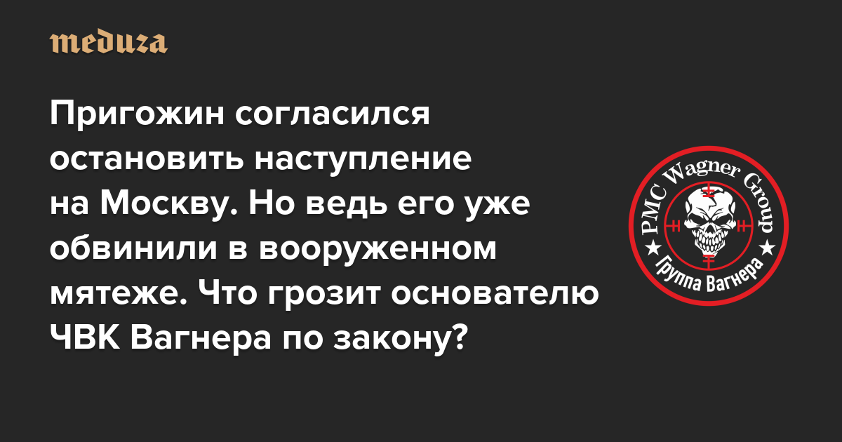 Пригожин согласился остановить наступление на Москву. Но ведь его уже обвинили в вооруженном мятеже. Что грозит основателю ЧВК Вагнера по закону?
