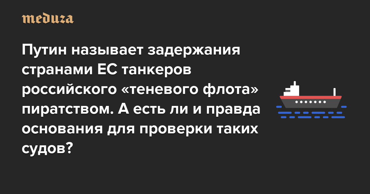В апреле 2025 года Эстония задержала танкер российского «теневого флота» «Кивала», 27 сентября то же самое судно, теперь переименованное в «Боракай», задержала Франция. В Сочи на встрече Валдайского клуба Владимир Путин назвал действия французских властей пиратством, так как задержание произошло в так называемых нейтральных водах. По просьбе «Медузы» Пьер Тевенен, специалист по международному морскому праву и исследователь в Stockholm International Peace Research Institute, объясняет международные правовые основания задержания танкеров теневого флота.