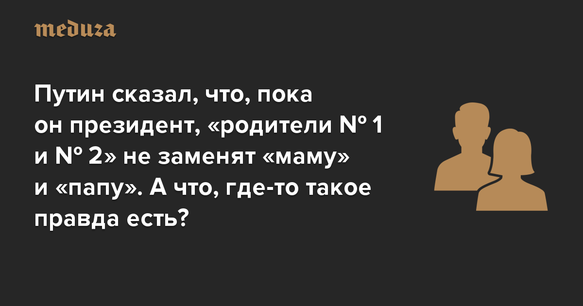 Путин сказал, что, пока он президент, «родители № 1 и № 2» не заменят «маму» и «папу». А что, где-то такое правда есть? Разбираем любимую страшилку российских властей
