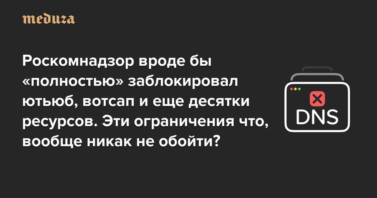 Но часто они разрешают клиентам прописывать в настройках другие DNS-серверы. То есть при желании можно даже при включенном VPN испытать на себе блокировки, предусмотренные в НСДИ, — и остаться без ютьюба, фейсбука и инстаграма.