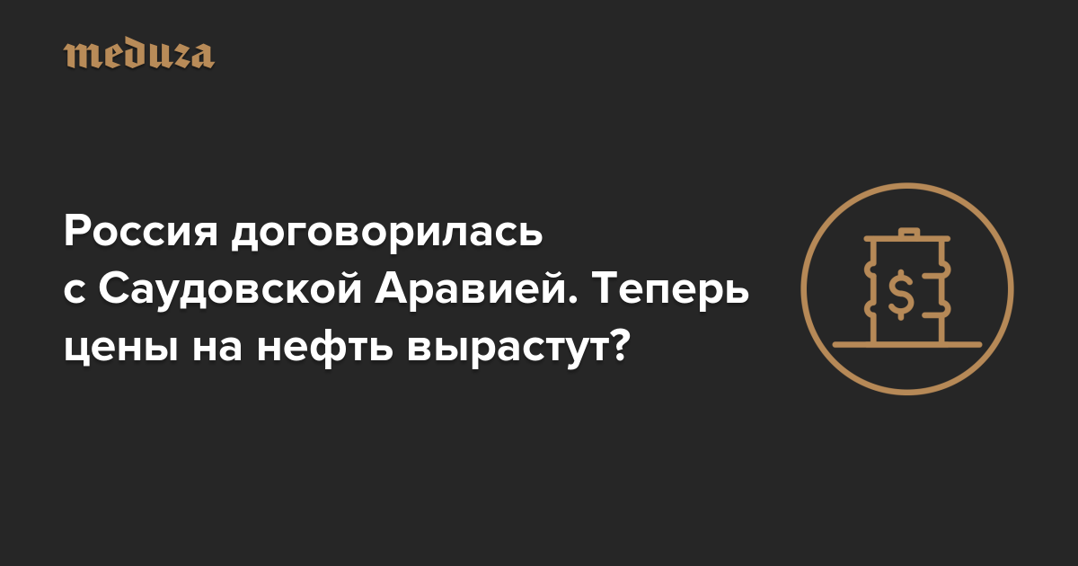 Россия договорилась с Саудовской Аравией. Теперь цены на нефть вырастут?