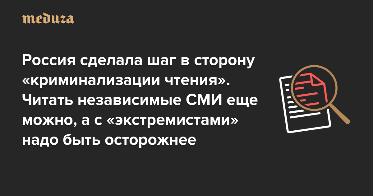 Россия сделала шаг в сторону «криминализации чтения». Читать независимые СМИ еще можно, а вот с «экстремистами» надо быть осторожнее Пока все не очень страшно, но дальше явно будет хуже