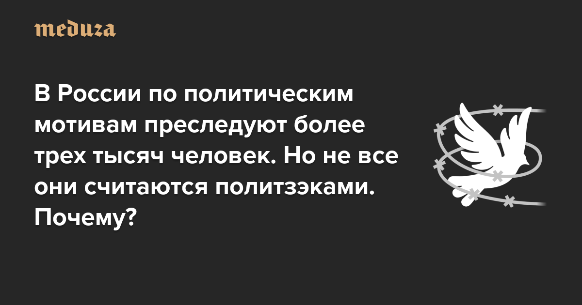 Впрочем, существует и другой статус — людей, которых преследуют по политическим мотивам. В России его присваивает правозащитный проект «ОВД-Инфо» и другие организации. Некоторые из них находятся на свободе, поэтому называть их «заключенными» неверно, хотя они тоже подвергаются политическим репрессиям со стороны государства. Для всех этих людей пока нет устоявшегося термина. Зачастую их называют «политпреследуемыми».