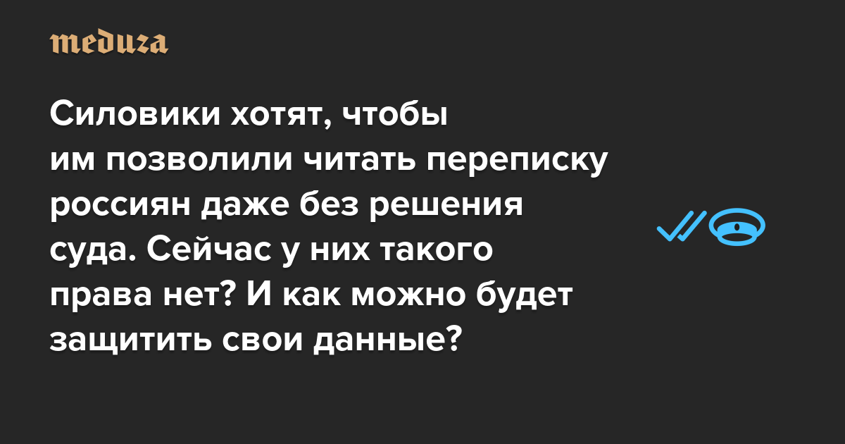 Силовики хотят, чтобы им позволили читать переписку россиян даже без решения суда. Сейчас у них такого права нет? И как можно будет защитить свои данные?