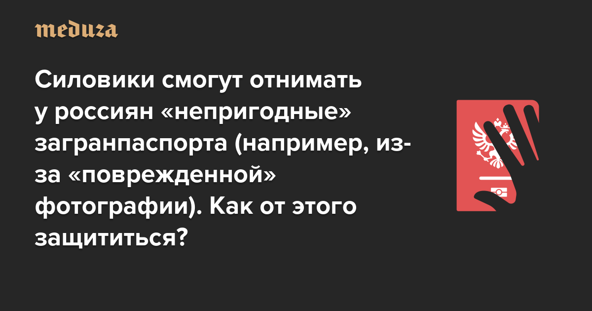 Силовики теперь смогут отнимать у россиян «непригодные» загранпаспорта (например, из-за «поврежденной» фотографии). Как от этого защититься?