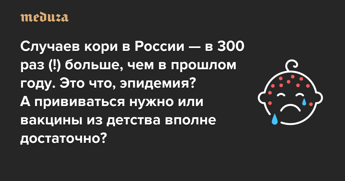 Случаев кори в России — в 300 раз (!) больше, чем в прошлом году. Это что, эпидемия? А прививаться нужно или вакцины из детства вполне достаточно?